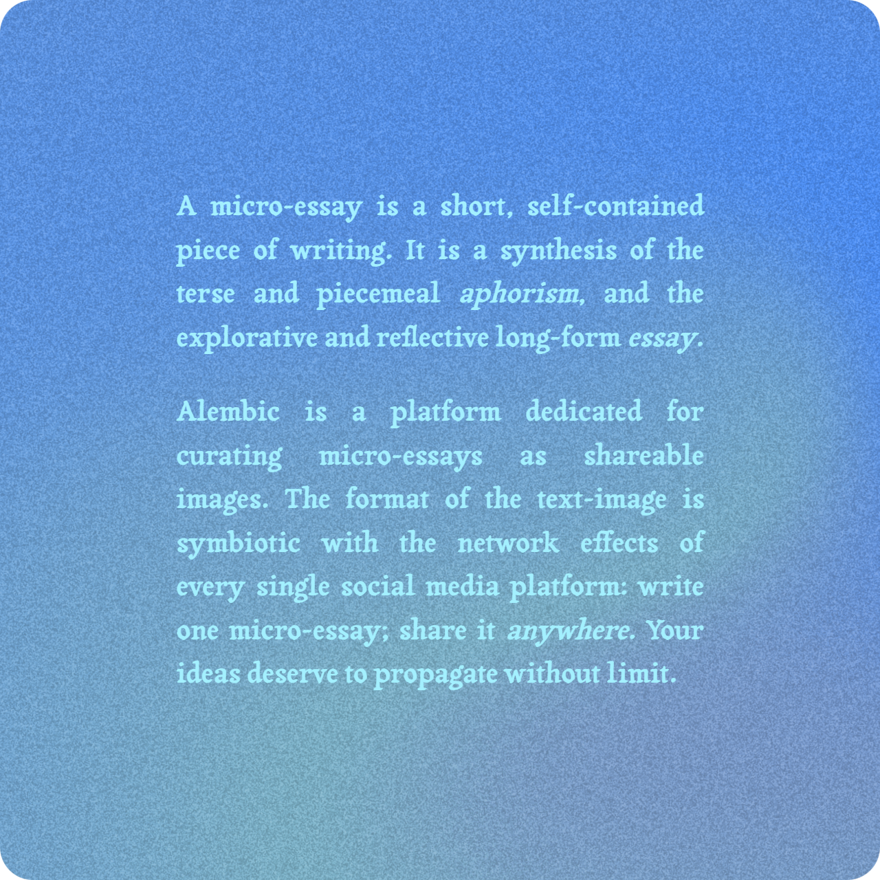 Text images dominate engagement on social media because presentation matters. Alembic lets you nail both the thinking and the presentation in one place - zero context switching between writing tool and image editor.